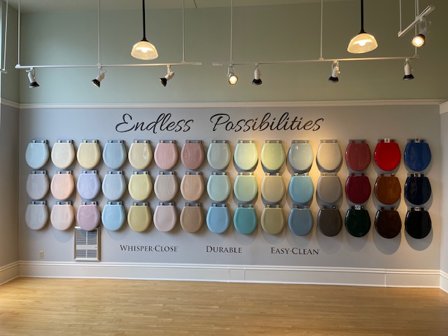 Toilet seats of every shape, color, size and function can be found at the Bemis Bath Shoppe & Boutique. Various lifestyle vignettes provide working displays of whisper close toilet seats, potty training seats, easy to clean, raised toilet seats, a personal cleansing spa, innovative products, and much more!